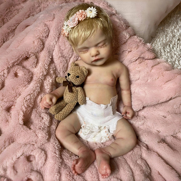 18" Full-Body Solid Silicone Reborn Baby Girl Doll Sam with Rooted Hair